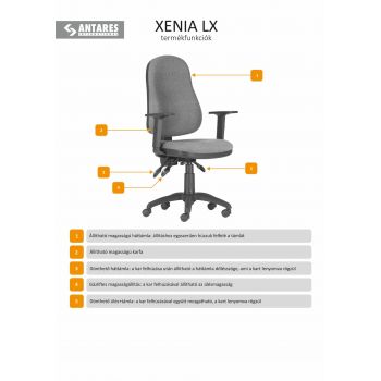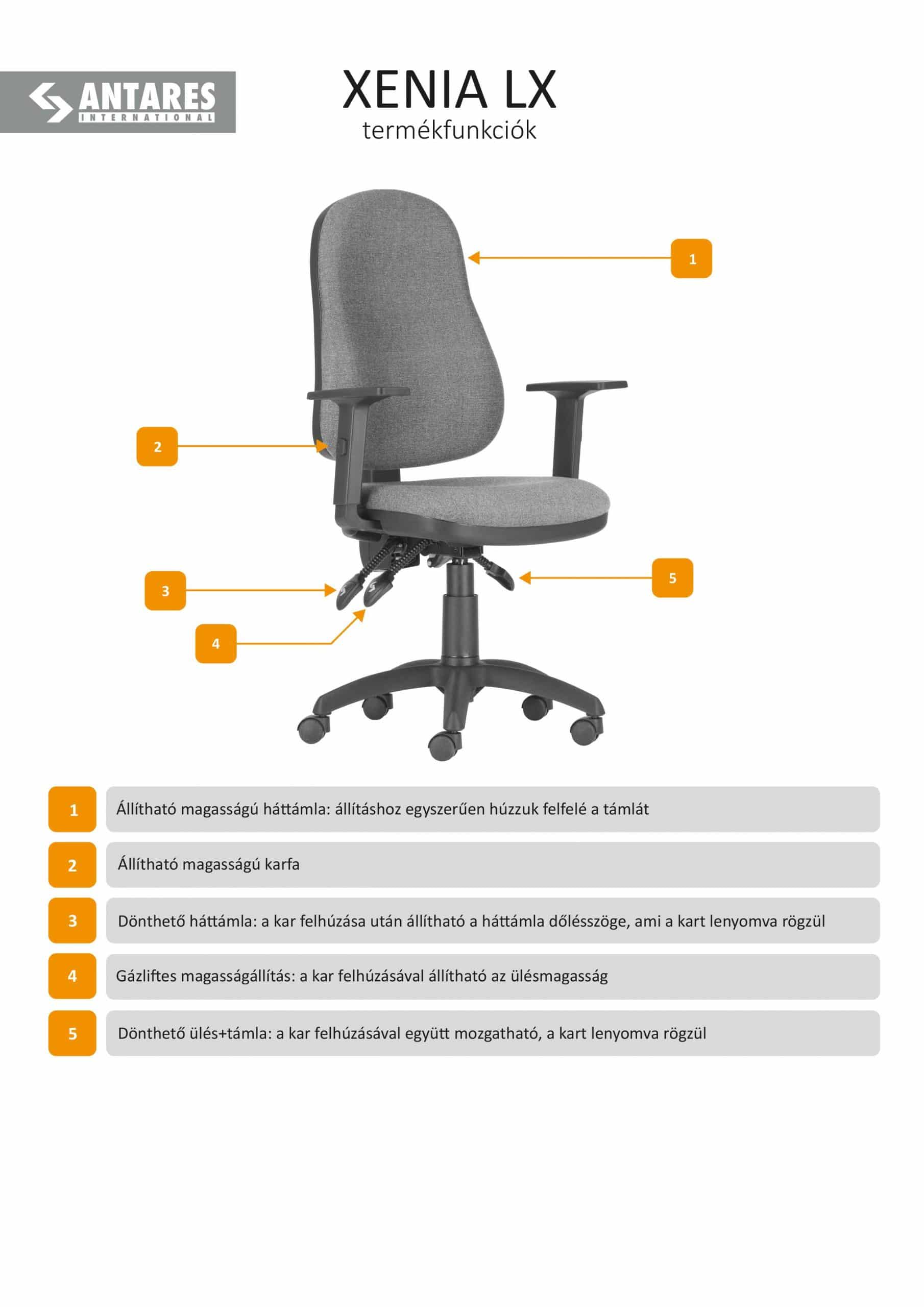 - ergonomikus, állítható magasságú háttámla - 1D karfa (AR11) - aszinkron mechanika - műanyag lábkereszt d.600, d.50 görgők - teherbírás: 110 kg - napi használati idő: 7-10 óra